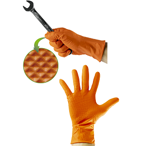 Luvas com textura de diamante.Excelente resistência química e de punção.Cumpre com a norma EN455.